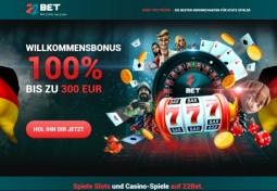 22BET ist, wie der Name schon glauben lässt, ein Online Casino sowie ein Sportwetten Anbieter. Das Online Casino ist mit mehr als 6.000 Slots ausgestattet und hält so auch etwas für Casino Spieler bereit.